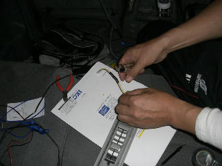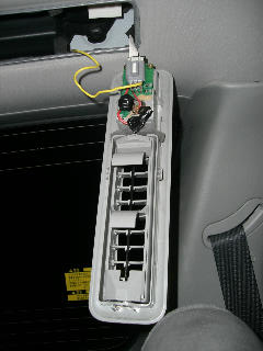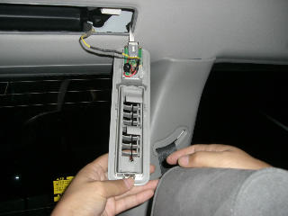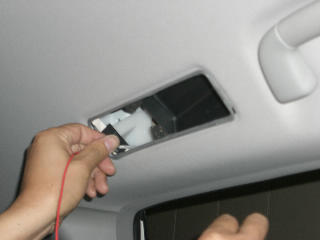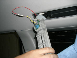 写真の右手の上の内張を剥がして、手を突っ込んで通しました。