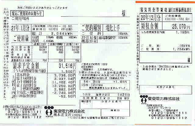 | 月 | 昼間kw | 朝晩kw | 深夜kw | 合計kw | 買電料 | 発電量kw | 消費kw | 売電量kw | 売電料 | 差引料 | 自家消費分 | 備 考 |