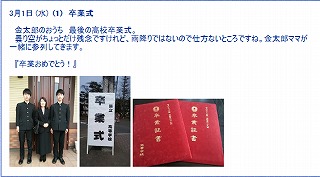 | 3月8日 (水) (3) 国公立大学 前期合否報告 金太郎のおうち受験生の国公立大学前期試験の合格発表がありました。 私立大には 保険金として2人で44万円を支払いました。『入学金は惜しいけど、無駄になって欲しい。』と願っていました。 私立(理系)と国公立では、授業料が大きく違いますので、入学金ぐらいはキャンセル料としてとられたっていいんだと考えていました。 センターが大失敗だった金太郎けん しかも二次の専門適性検査が予想もつかない分野からの出題で完全消滅状態でした。 『0点っていうことはないから。』 『部分点で5割はもらえるよ。』 などと励ましてはいましたが、親としても不安がいっぱいでした。 センターは金太郎けんと比べて圧縮25点(素点で50点)ほど多くとれてまずまずの成績だった金太郎こう。それでもセンターリサーチ「B」判定で、二次のできにかかっていました。慣れない面接と英語のできが心配だったけど、もっと心配だったのは兄:金太郎けんの合否の方だったかも知れません。 13時の大学のホームページは アクセスが集中していたためになかなかアクセスできませんでした。 真っ白な画面でイライラとドキドキの長く感じる時間でした。開いたときには、真っ先に金太郎けんの合否を確認しました。(金太カパパもこっちが心配でならなかったのです。) 結果は 画像の通りです。 ![]() 金太郎のおうち 4人目と5人目の大学受験が無事に終わりました。 おめでとう! そして ありがとう! |